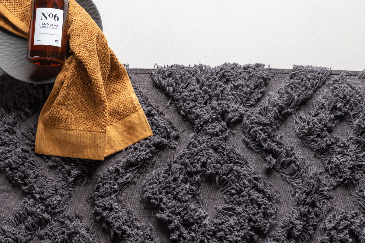 Slut på de kalla och hårda stegen på golvet – badrumsmattan Hilma ger dig den förtrollande mjukhet och komfort du förtjänar. Tillverkad av 100% bomull och ett lekfullt men strukturerat mönster skapar Hilma ett djup och ger rummet nya dimensioner! Så omsluter denna badrumsmatta dina fötter i en lyxig och mjuk känsla varje gång du kliver på den. Låt dig sjunka ner i dess varma och gosiga yta och upplev en ny nivå av avkoppling i ditt badrum. Dess rektangulära form och mått på 50x80 cm kombinerat med mörkgråa toner skapar en sofistikerad och tidlös estetik som passar perfekt in i alla badrumsinredningar. Oavsett om ditt badrum har en modern, minimalistisk eller klassisk stil, kommer Hilma att vara en perfekt komplettering till din inredning. Den neutrala färgen gör att Hilma lätt kan matchas med andra badrumstillbehör och färger. Du kan enkelt skapa en harmonisk och enhetlig look genom att kombinera Hilma med handdukar och andra badrumstillbehör. Uppgradera ditt badrum till en elegant och välkomnande oas med Hilma badrumsmatta. Hilma kommer i många olika färger för att just du ska kunna hitta din favorit och match!