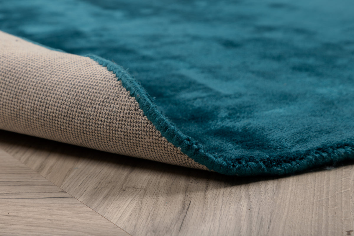 Inred ditt hem med en modern viskosmatta i en drömlik havsblå nyans! Indra erbjuder populära viskosmattor i olika kulörer och storlekar, tillverkade av viskos på ovansidan och bomull undertill. Den här runda skönheten kommer garanterat imponera i ditt vardagsrum. Det slitstarka materialet har en elegant glans som ger en exklusiv och silkeslen känsla till rummet. Matcha upp färgen i läckra tavlor och njut av ett trendigt helhetsintryck! Skötselråd: Tips vid fläckborttagning, använd inte vatten då materialet är känsligt mot detta. Använd istället ett anpassat fläckborttagningsmedel. Mattan bör inte användas i fuktiga rum som kök, källare, hall eller badrum. Regelbunden och försiktig borstning och dammsugning är att föredra för att minska risken att damm och smuts sätter sig ner i fibrernas rötter.