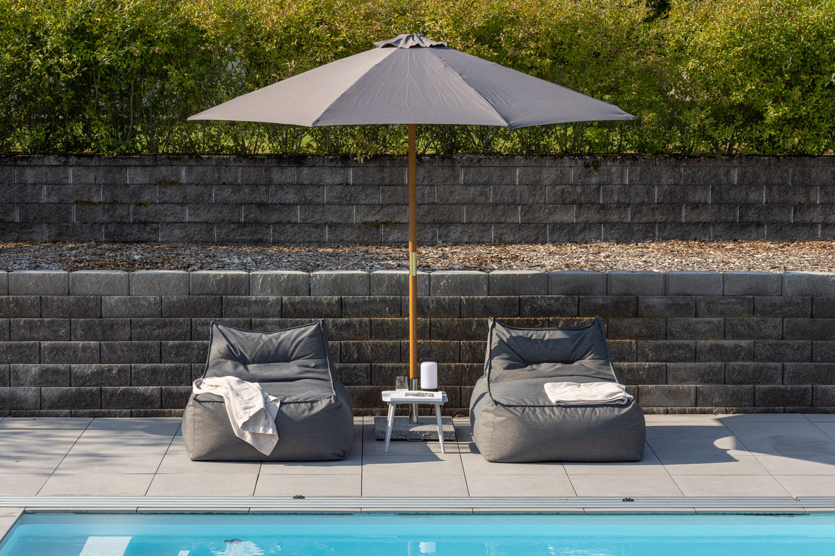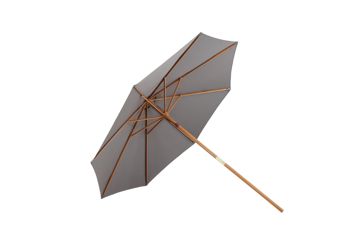 Med Ixos får du ett smakfullt, fristående parasoll i grått tyg med en stomme i trä. Parasollet är enkelt att fälla ut och dra ihop. Den enkla designen och vackre kulörerna skapar ett modernt och tidlöst uttryck på uteplatsen. Den nätta storleken gör parasollet enklet att flytta på när det inte används. Dra på ett överdrag när parasollet inte används för att minska risken för solblekning.
