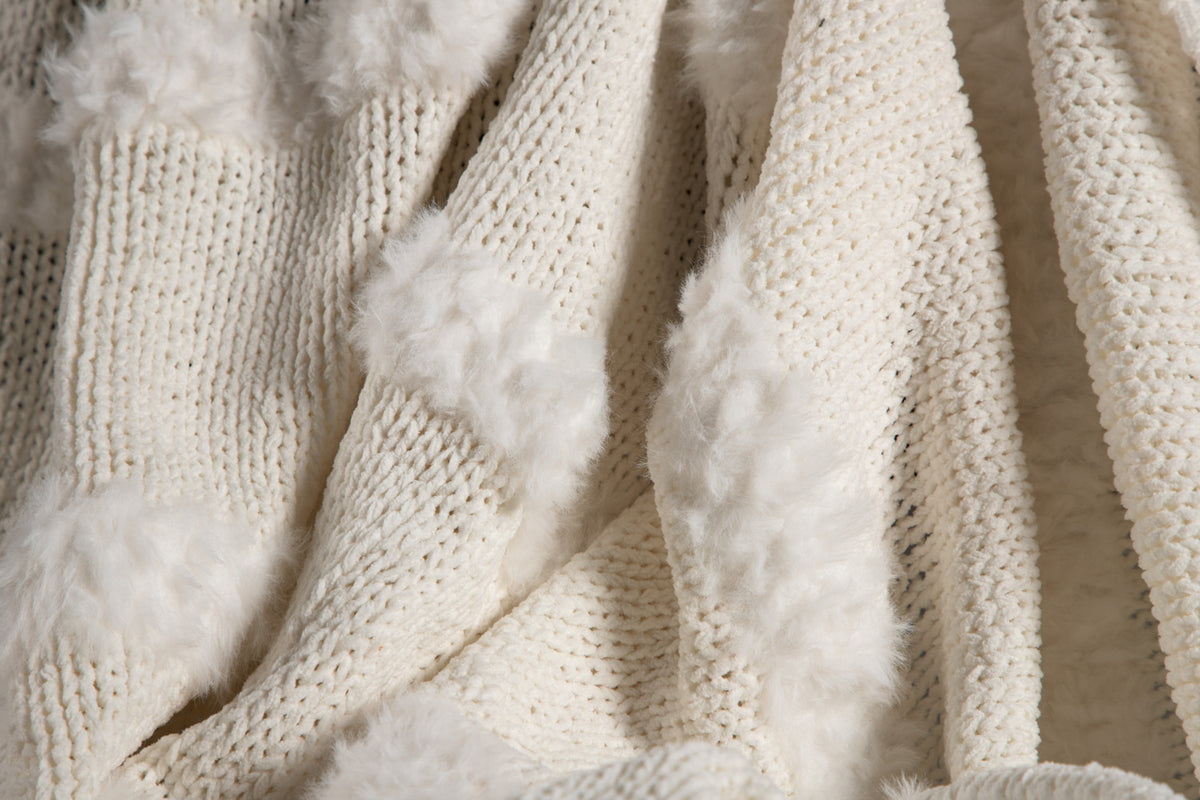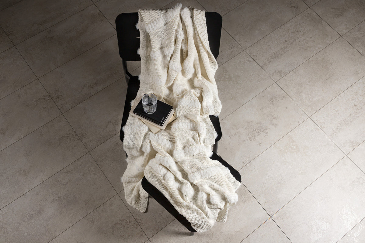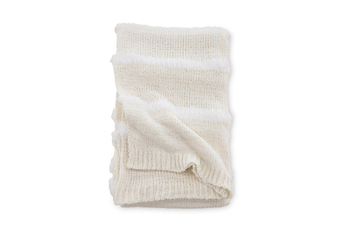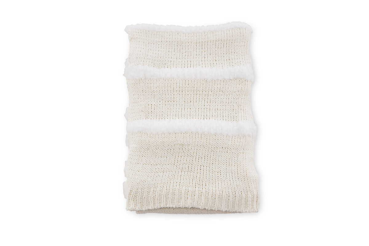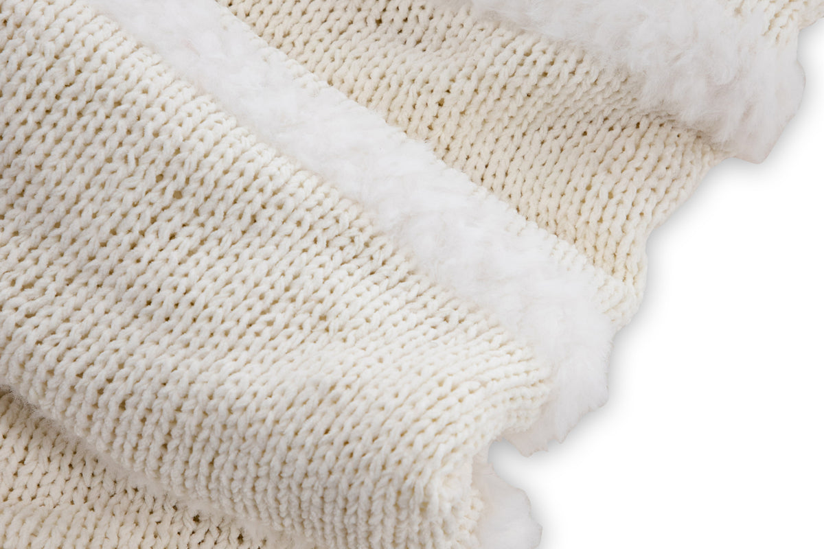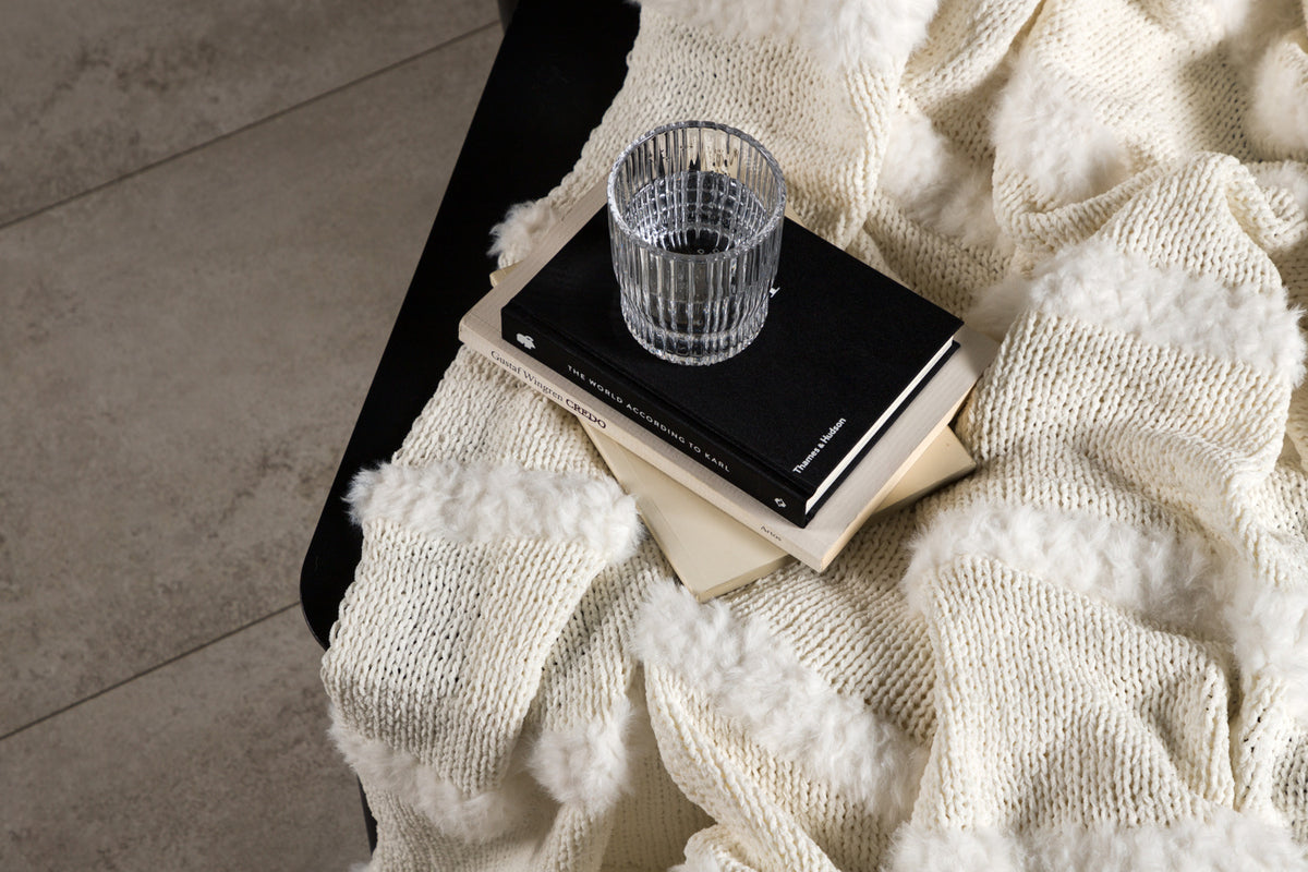 Katleen är pläden som garanterat höjer mysfaktorn i ditt hem! Pläden har ett linjerat mönster av tuftat fuskpäls och tillverkad av polyetser och chenille. Den gräddiga vita kulören smälter in i inredningen och filtens mjuka kvaliteer håller dig varm under hela filmkvällen. Mått 130x170 cm.