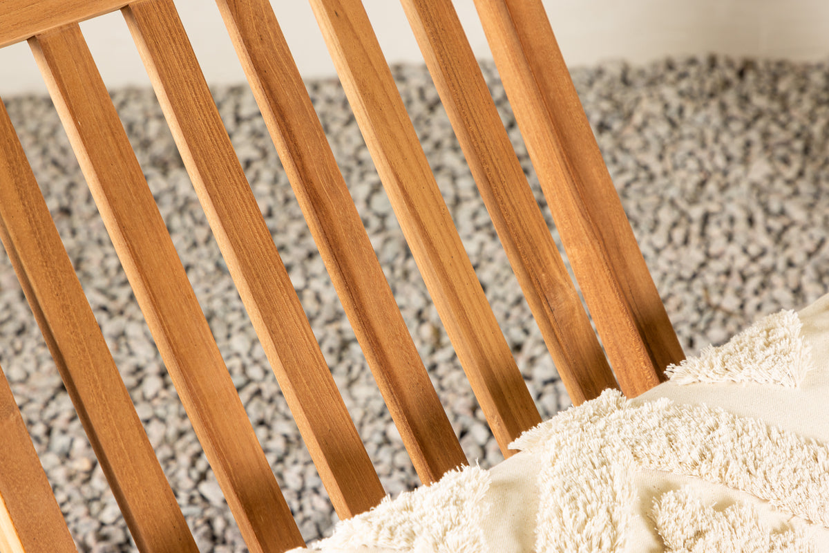 Möt Kenya, loungestolen som bjuder in till en harmonisk stund i trädgården eller på uteplatsen. Tillverkad helt i teak, kombinerar Kenya modern design med enkel elegans. Den stilrena och snygga designen gör Kenya till en ögonfångare som smälter in i olika utomhusmiljöer. Teakens naturliga skönhet ger inte bara en tidlös charm utan är också känd för sin hållbarhet och motståndskraft mot väder och vind. Kenya inbjuder till avkoppling och är den perfekta platsen att slå sig ner med en bok eller bara njuta av frisk luft. Den enkla men sofistikerade designen gör den till en mångsidig loungestol som kompletterar din utomhusinredning på ett subtilt sätt. Skapa din egen oas med Kenya loungestolen och låt den bli en plats för lugn och njutning. Med dess bekväma design och kvalitativa material är Kenya det ultimata valet för den som söker avkoppling med stil utomhus.