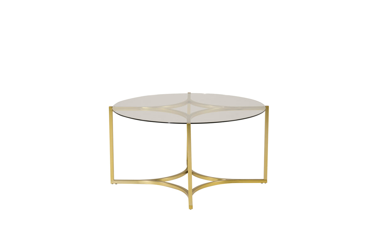 Ett lyxigt soffbord som drar blickarna till sig! Soffbordet Kivik har en bordsskiva i glas som tillåter det vackra guldiga underredet att lysa igenom. Bordet har en vacker och luftig design med ett underede som är rundat och sammanlänkat i ett vackert mönster. Placera på en matta framför soffan och dekorera med matchande ljusstakar och vaser för en enhetlig känsla. Soffbordet tillhör Furniture Fashion.
