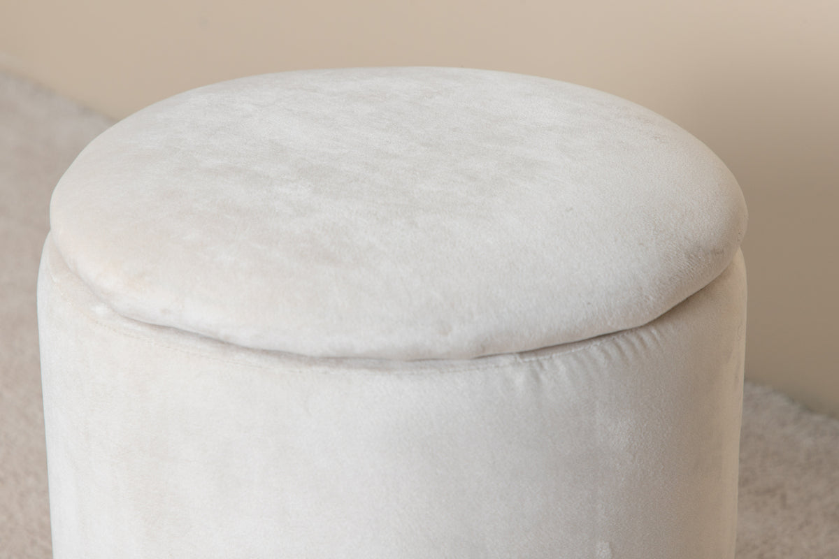En sammetslen inredningsdröm som är lika praktisk som snygg - det är precis vad sittpuffen Limpen erbjuder! Med ett brett användningsområde, nätt storlek och stilrent utseende är puffen lättplacerad och enkel att flytta omkring. Det finns även ett avtagbart lock som möjliggör dold förvaring. Tillverkad i läckert sammetstyg i beige kulör och en stomme av materialen skum, bomullsfiber, tyg och böjt trä. Puffens mått: Höjd: 40 cm, diameter: 32 cm. Möblera vardagsrummet smart och stilsäkert! Skötselråd: Sammet har en tendens till att få tryckmärken när luggen lägger sig ner. Avtrycken kan göra att tyget ser slitet ut, vilket här helt normalt för den här typen av material. Beroende på hur ljuset faller kan tyget skifta i flertalet olika nyanser.