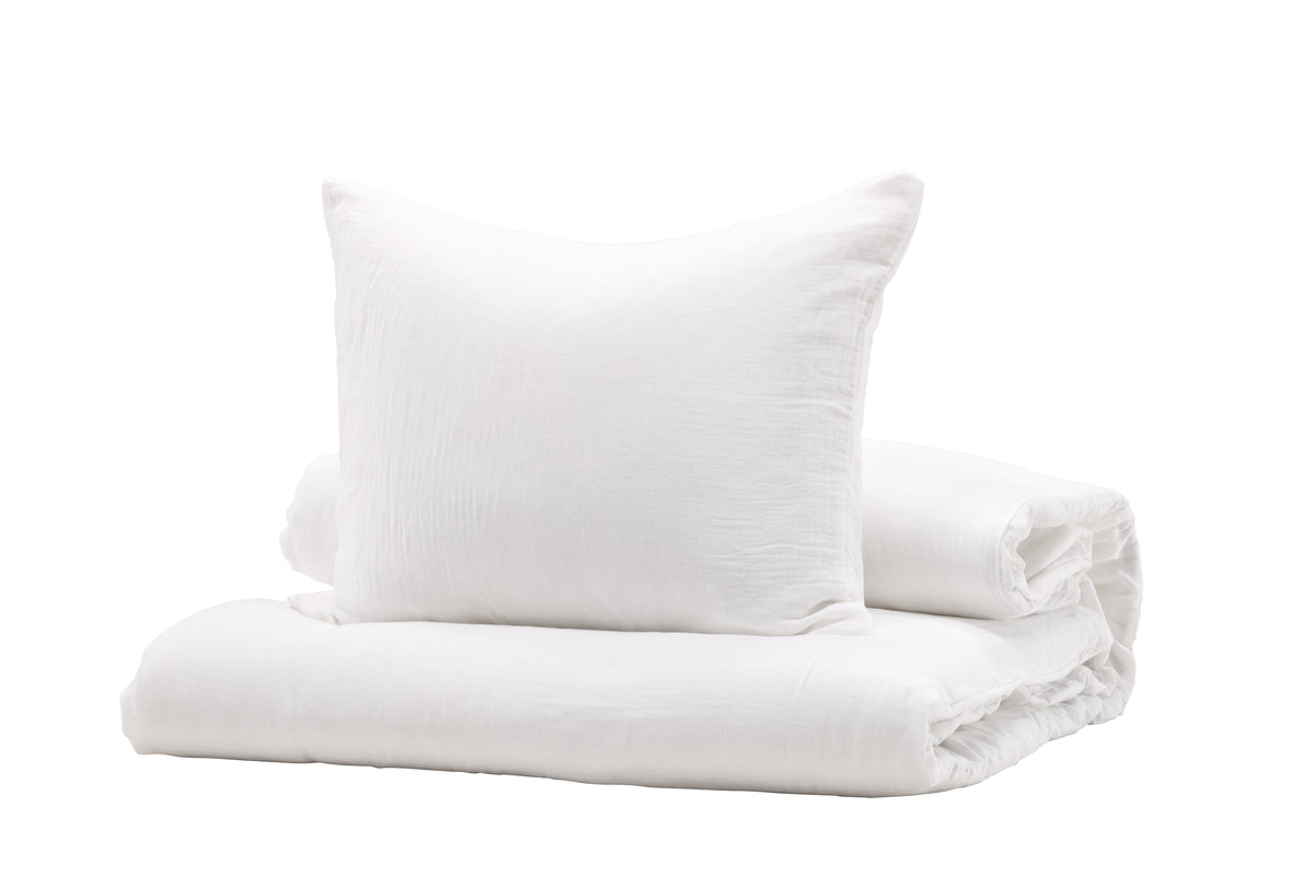 Mila bäddsätt har alla rätt - mysigt, snyggt och skönt! De här sängkläderna i bomullsväv är tvättåligt och står sig över tid. Bäddsetet är stilrent enfärgat i en smakfull vit kulör. Skapa den lyxiga hotellkänslan i ditt eget sovrum - det här bäddsetet är lika gosigt att bädda ner sig i som skönt att sova på!