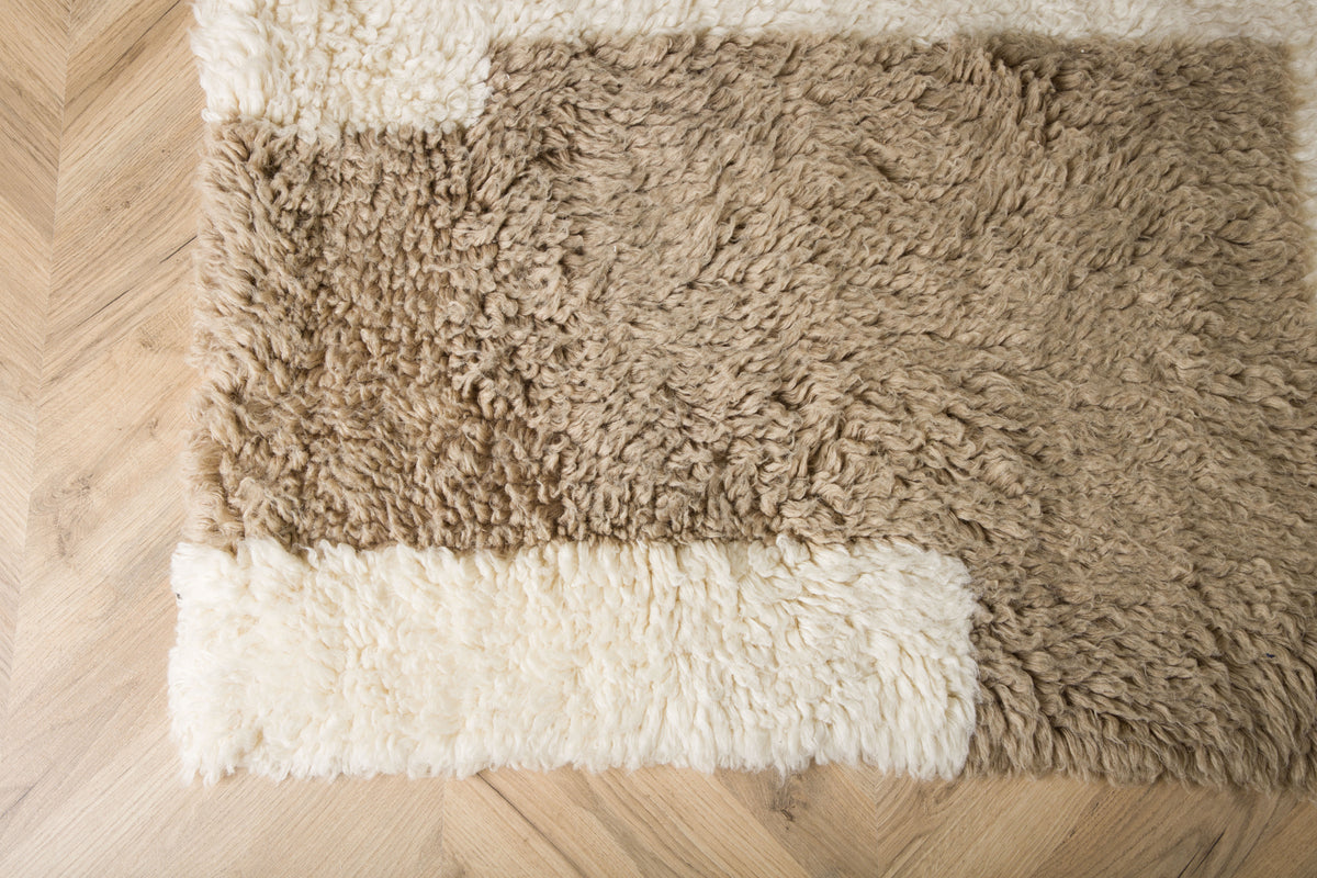 Abstarkt, mysig och iögonfallande - En matta med alla rätt helt enkelt! Den här ullmattan från serien Nestor har en mjuk och fyllig känsla med sin höga lugg och täthet som ger ett sofistikerat intryck till rummet. Mönstret är abstarkt i jordnära kulörer av vitt, beige och brunt som enkelt passar in i de flesta hem. Placera under soffgruppen eller i sovrummet och värm fötterna på en gosig matta som ombonar rummet! Mått: 300x200 cm.