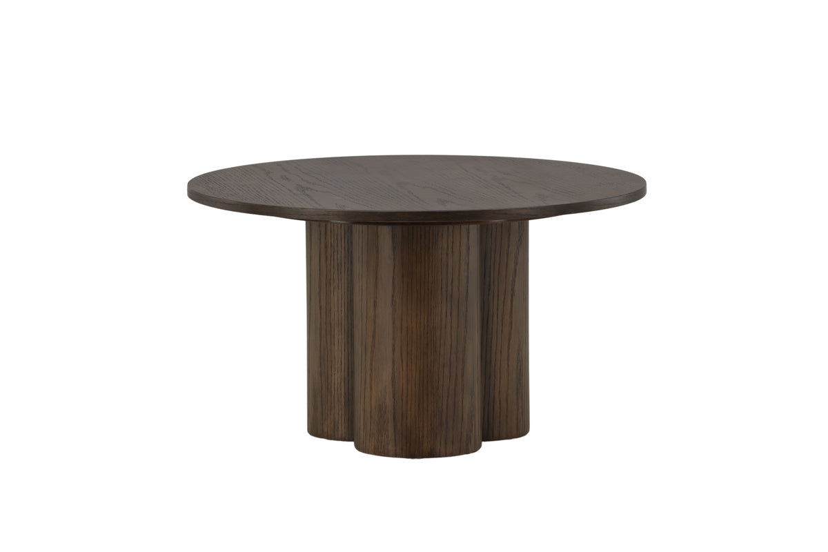 Ta din inredning till nästa nivå med ett soffbord som klättrar på trendlistorna! Olivia soffbord är tillverkad i MDF med faner i en smäcker mocca-kulör och har en cylinderformad uppbyggnad vilket skapar en smakfull dimension till bordet. Den runda toppskivan är fanerad och stommen utgörs av tre cylinderformade ben, samlade under bordets mitt. Bordet är otroligt användbart både som soffbord eller sidobord och den nätta storleken gör bordet enkelt att placera och flytta runt i hemmet. Här får du ett modernt sidobord som imponerar med sina mjuka former, stilrena design och trendsäkra kulör!