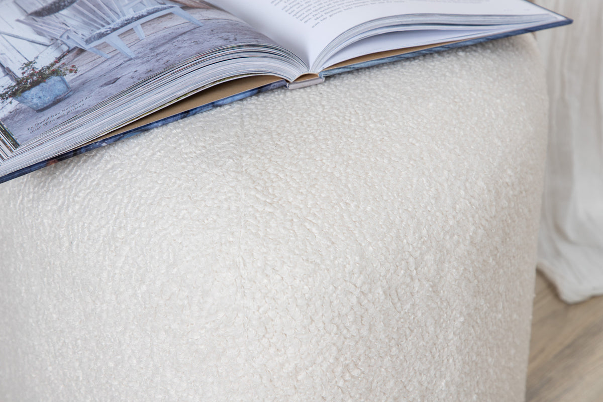 Peg - en triangelformad inredningsdröm och smart tillskott till hemmet! Med sin nätta storlek och lurviga teddytyg i mysig vit kulör passar den lika bra som fotpall eller extra sittplats som ensam stilikon. Sittpuffen Peg utmärks av sina mjuka former och modemedvetna design som drar blickarna till. Tillverkad av materialen skum, bomullsfiber, teddytyg och böjt trä. Puffens mått: Höjd: 41 cm, diameter: 46 cm. Inred rummet smart och stilsäkert! Skötselråd: Ta bort fläckar med en gång, gnid inte utan försökt suga upp varsamt med en trasa. Skulle fläckarna inte gå bort, prova ett fläckborttagningsmedel som du först provat på en mindre synlig del av tyget.