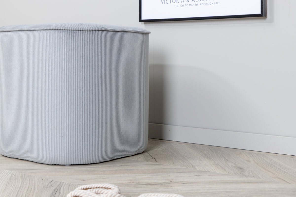 För in 50-tals nostalgin i ditt hem med en grå sittpuff i läckert manchestertyg! Piff är både praktisk med flertal användningsområden och nätt storlek samt förhöjer inredningskänslan i ditt hem - en smart kombination helt enkelt! Använd som fotpall att vila fötterna på, som extra sittplats när gästerna blir många eller placera som en stilikon intill övrigt möblemang - bara fantasin sätter gränser! Tillverkad i materialen skum, bomullsfiber, tyg och böjt trä. Puffens mått: Höjd: 41 cm, diameter: 44 cm. Inred ditt hem smidigt och stilmedvetet!
