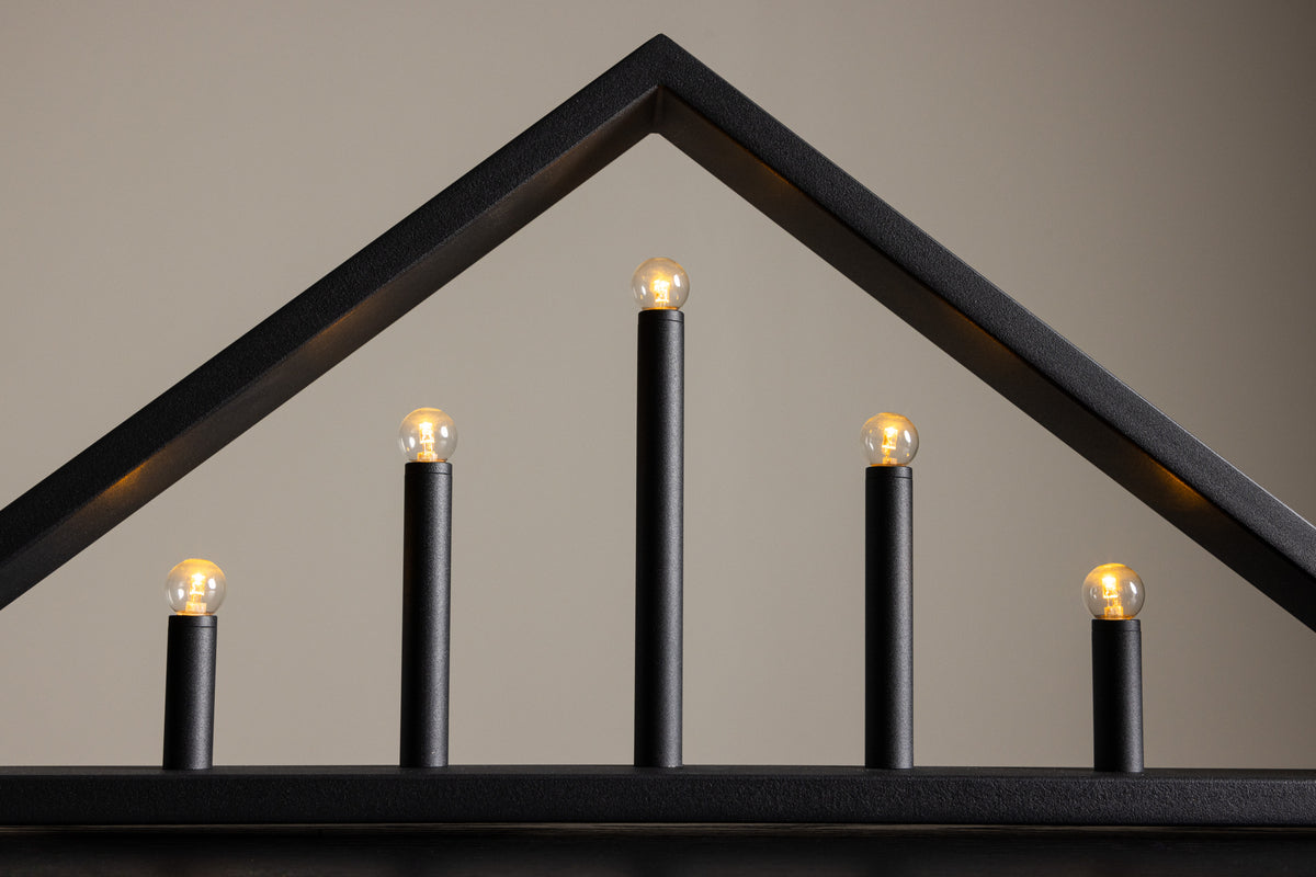 Ge ditt hem en touch av elegant enkelhet med Sankt Anton adventsljusstake. Tillverkad i svart metall, är denna adventsljusstake en sofistikerad och modern tolkning av den klassiska traditionen. Med plats för fem lampor sprider den en varm och inbjudande glöd genom ditt rum när du räknar ner dagarna fram till jul. Den svarta metallen ger en elegant kontrast till den mjuka belysningen och skapar en stämningsfull atmosfär i ditt hem. Placera den på ditt matsalsbord, på en hylla eller som en central del av din juldekoration för att lysa upp din väntan på julen. Med Sankt Anton adventsljusstake kan du njuta av en tidlös tradition med en modern twist. Låt den bli en del av din jultradition och skapa minnen som varar år efter år.