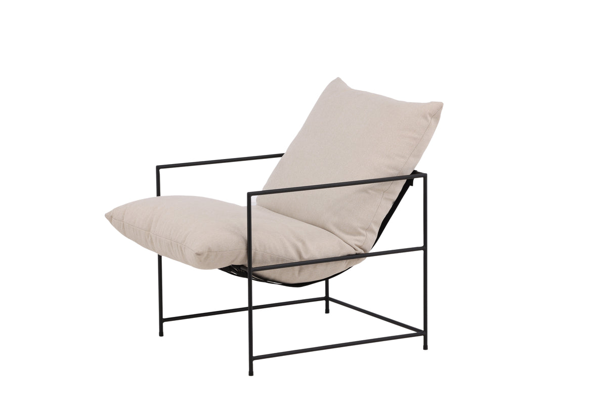 Modern, stilsäker och bekväm - en fåtöljdröm helt enkelt! Den här trendiga fåtöljen tillhör serien Sedalia och har en minimalistisk stomme i smalt, svart stål med två mjuka kuddar till ryggstöd och sist i beige linnetyg. Den perfekta kombinationen av minimalism, hög komfort och tidlösa kulör gör att den här fåtöljen snabbt blir en favorit i hemmet och står sig över tid!