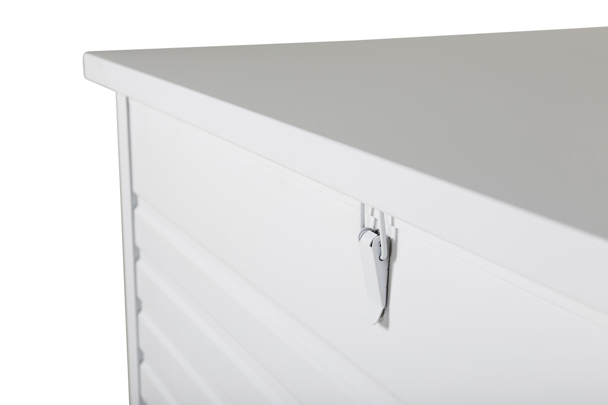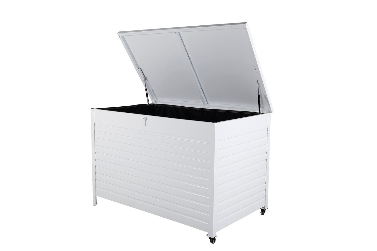 Tiana är otroligt smart och praktisk för förvaring av dina dynor och andra utemiljöartiklar. Ta hand om dina dynor på rätt sätt med hjälp av en snygg dynbox - det kan förlänga livslängden! Vi tipsar! Dynboxar i aluminium och rostfritt stål bör rengöras regelbundet med vatten och mild tvål. Skölj alltid noggrant med rikligt med vatten, något som blir extra viktigt om möblerna är placerade på ett havsnära avstånd där salt kan transporteras via luften. Saltet kan leda till korrosion som kan orsaka flagning eller bubblor i lacken. Tvätta inte dynboxen med högtryckstvätt, ytan kan skadas av det höga trycket.