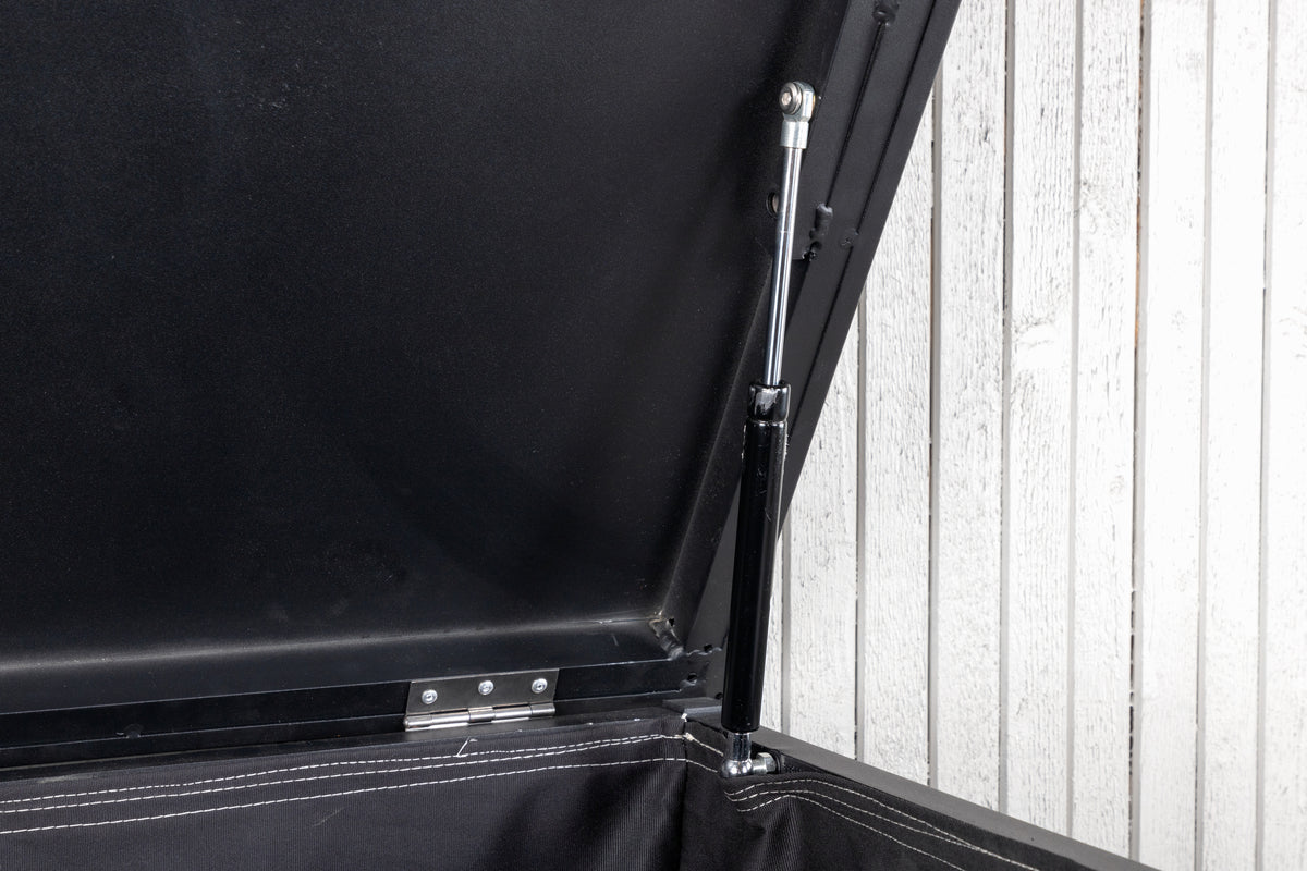Tiana är otroligt smart och praktisk för förvaring av dina dynor och andra utemiljöartiklar. Ta hand om dina dynor på rätt sätt med hjälp av en snygg dynbox - det kan förlänga livslängden! Vi tipsar! Utemöbler i aluminium och rostfritt stål bör rengöras regelbundet med vatten och mild tvål. Skölj alltid noggrant med rikligt med vatten, något som blir extra viktigt om möblerna är placerade på ett havsnära avstånd där salt kan transporteras via luften. Saltet kan leda till korrosion som kan orsaka flagning eller bubblor i lacken. Tvätta inte dynboxen med högtryckstvätt, ytan kan skadas av det höga trycket.